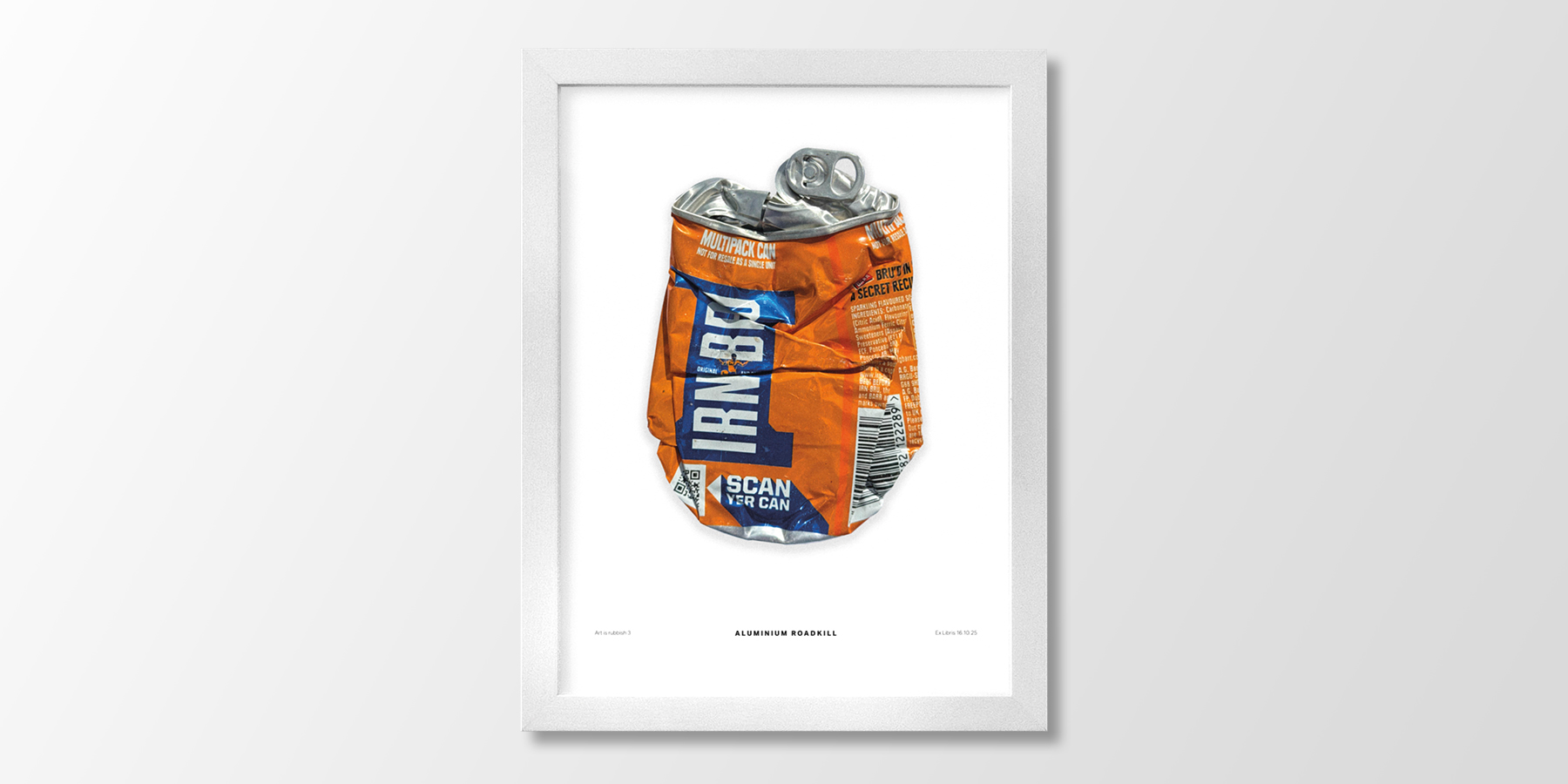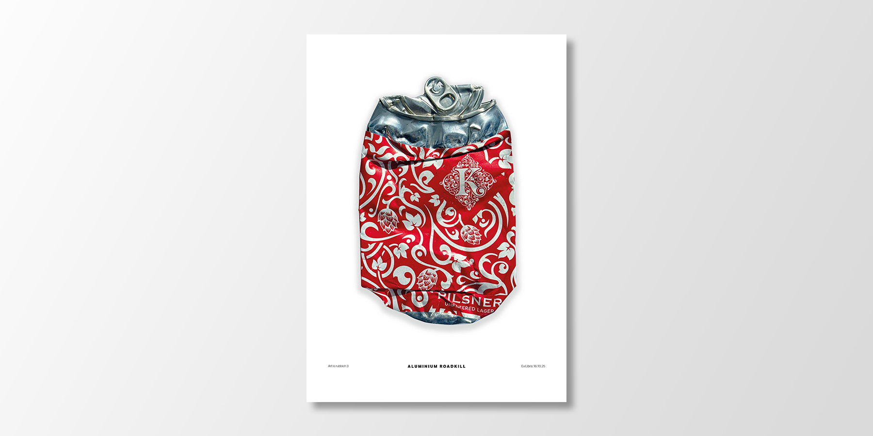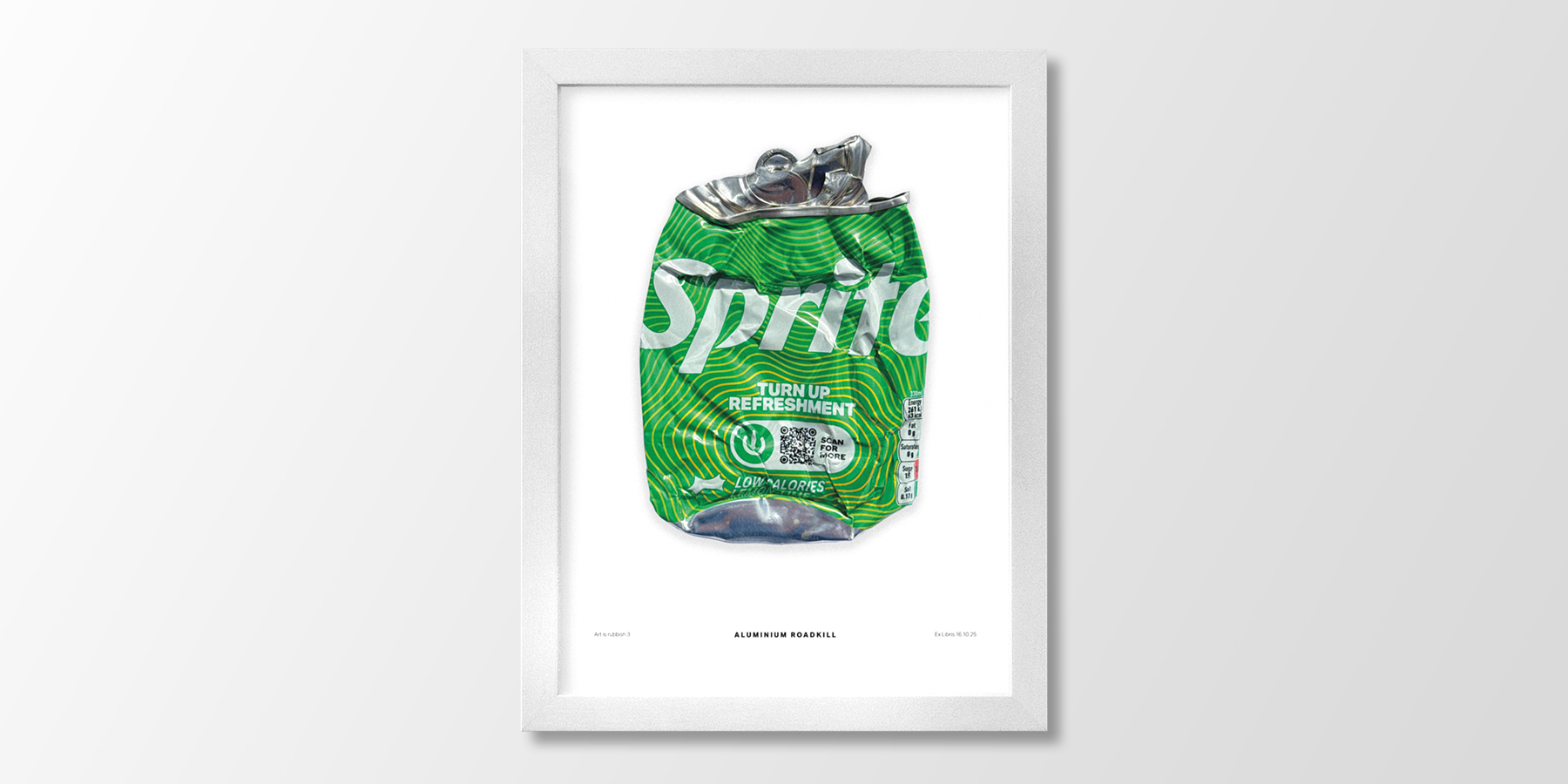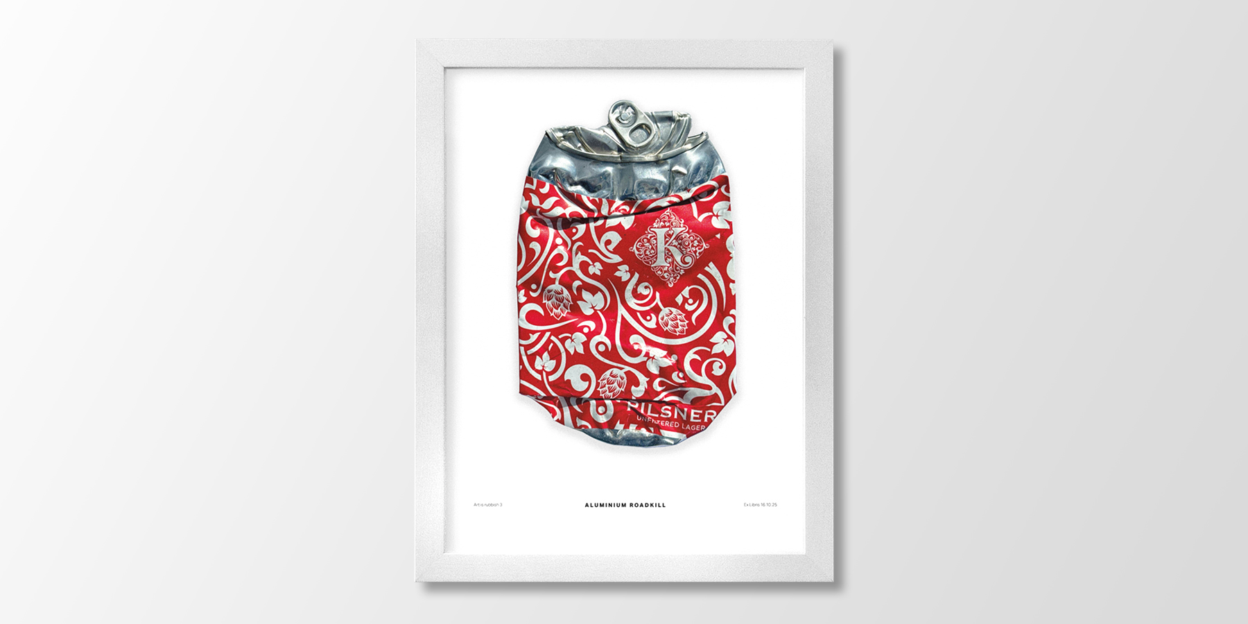 Approximately 3 billion aluminium drinks cans end up in landfill or are otherwise not recycled in the UK each year. If an aluminium can goes to landfill, it will sit there for 500 years before it oxidises. Ironically, aluminium is the most recyclable of all packaging materials. Recycling one aluminium can saves enough energy to run a TV for three hours. And the process takes 95% less energy than producing one from its raw materials. So here, I’m turning found aluminium cans into art. Displayed in their crushed and imperfect form. That’s half a dozen fewer cans heading to landfill.